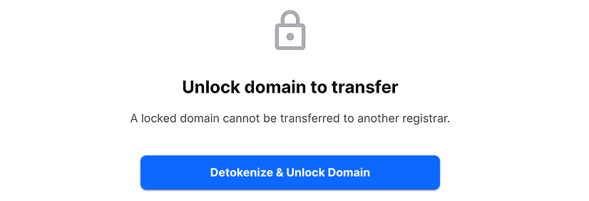 Click the Detokenize & Unlock Domain button on the right. This process will take a while.