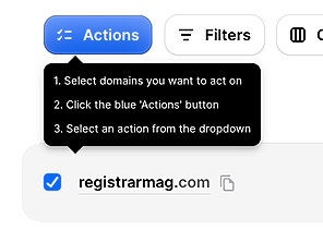 Select the checkbox on the domain name, then click the Actions button.